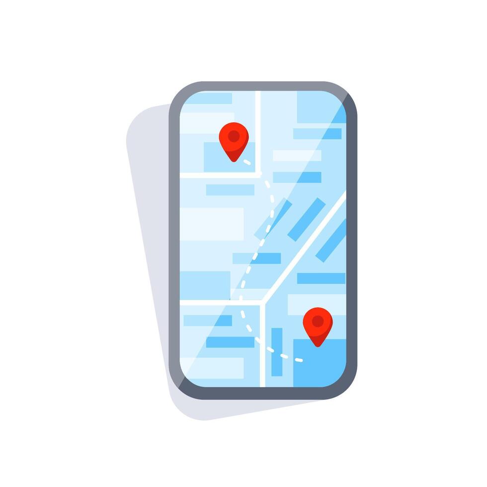 Smartphone showing map with route and two red pointers Pro Vector