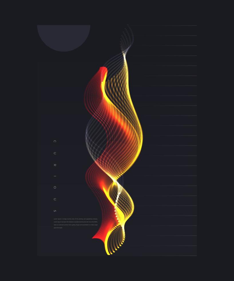 Abstract cover page design with shiny golden particle wave on dark background. conceptual element design. Modern vector illustration. Pro Vector