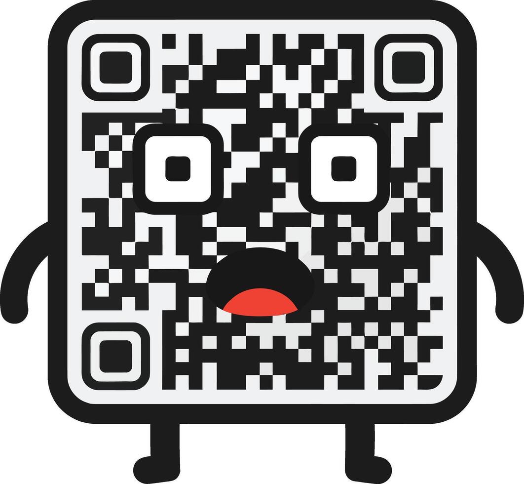 QR code cartoon character with sad expression and red tongue illustration for digital and technology design Pro Vector