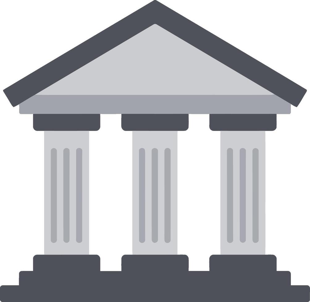 Classic government building icon with three columns and triangular pediment in simple flat style illustration Pro Vector