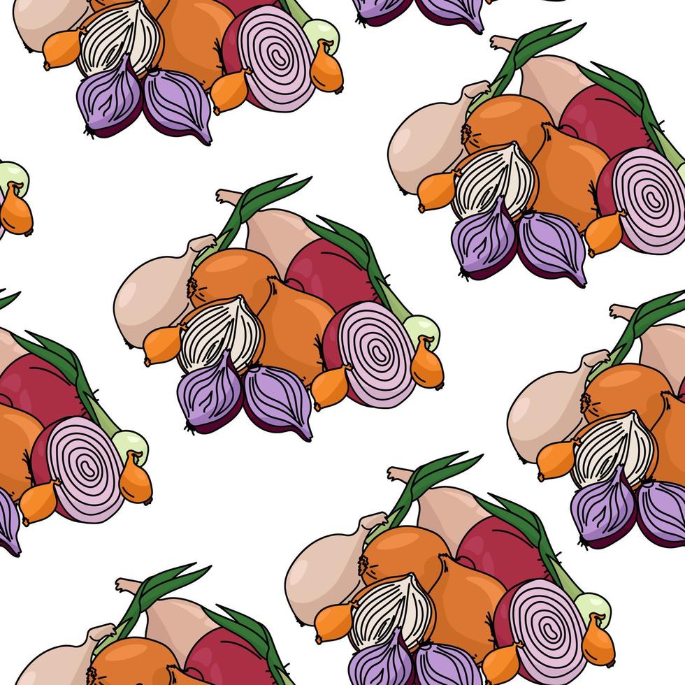 Heap of bulbs of various varieties and sizes seamless pattern, harvest of useful vegetable on a white background Pro Vector