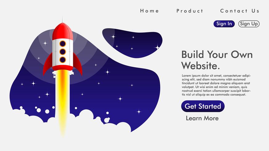 Web design and Landing page with a rocket Free Vector Pro Vector