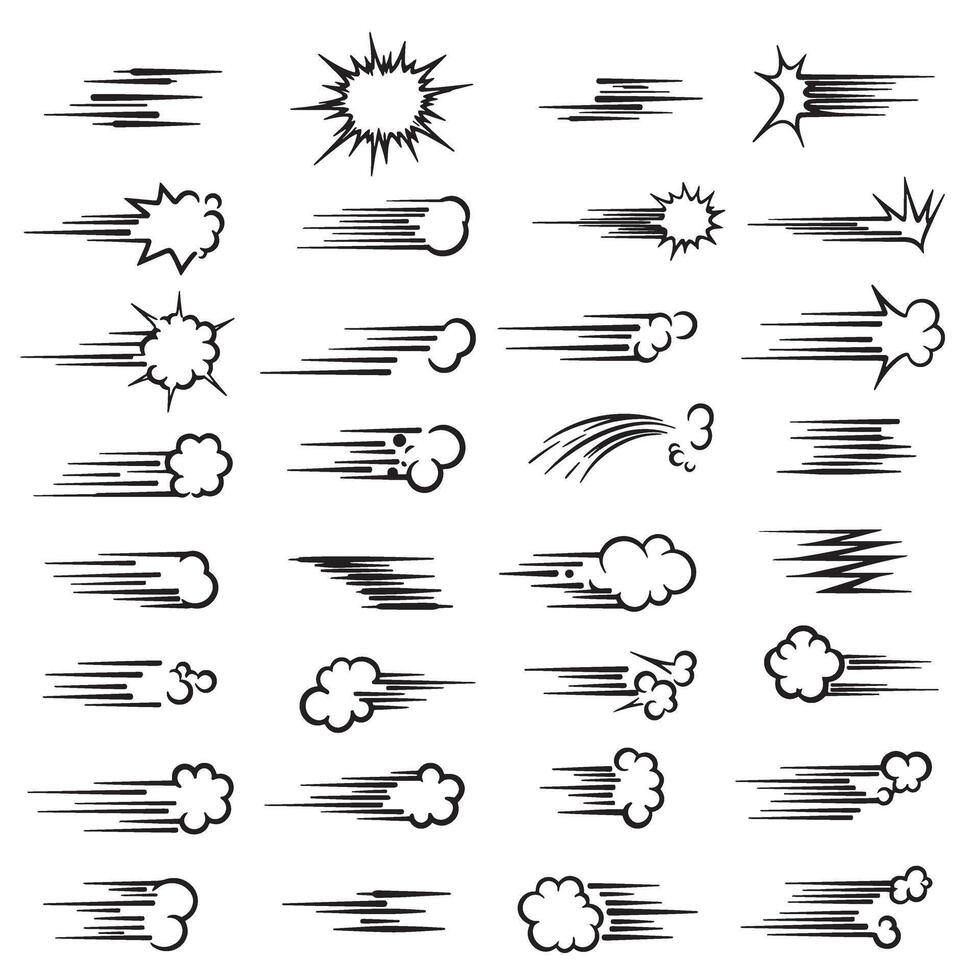 Expressive sketch curve ink and swirl elements in a motion line set for manga comic and action visuals Pro Vector