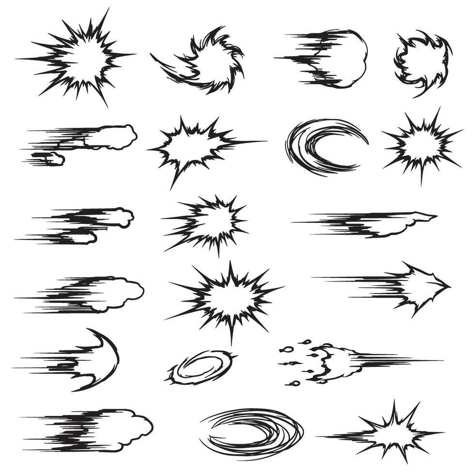 High speed anime line set with dynamic motion elements burst swirl and expressive sketch visuals Pro Vector