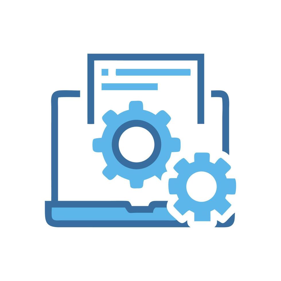 Laptop Configuration Icon, System Setup, Software Development, Gears Pro Vector