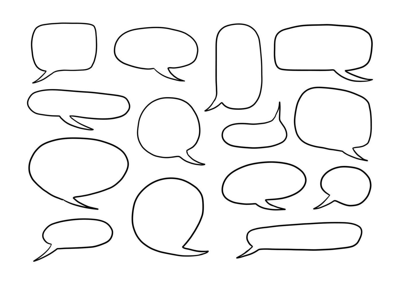 Hand Drawn Speech Bubble And Text Frame. A playful collection of 14 hand drawn speech bubbles and text frames in various styles including round square oval. Perfect for comics dialogue captions Pro Vector