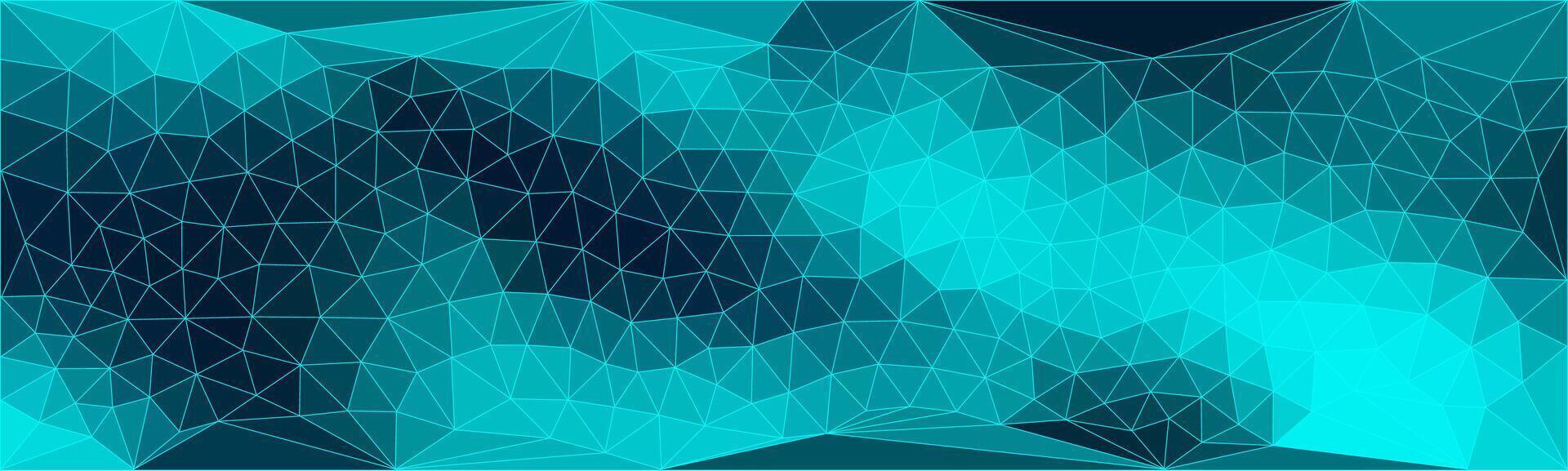 Futuristic low poly background in shades of cyan and blue, forming a geometric mesh pattern with dynamic, wave-like depth and dark contrasting areas. Pro Vector