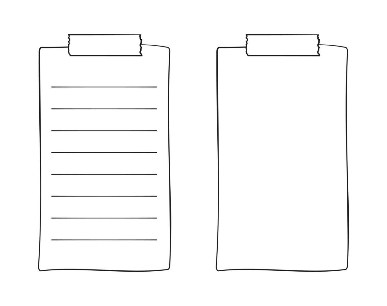 Rectangle memo notepad paper sheet, sticky note, reminder, to do list, sticky tape. Bullet journal elements in line art doodle style. Pro Vector