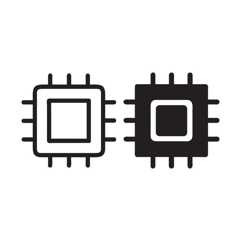 Illustration of Two CPU Microchips, Stroke line icons set of chip. Simple symbols for app development and website design Pro Vector