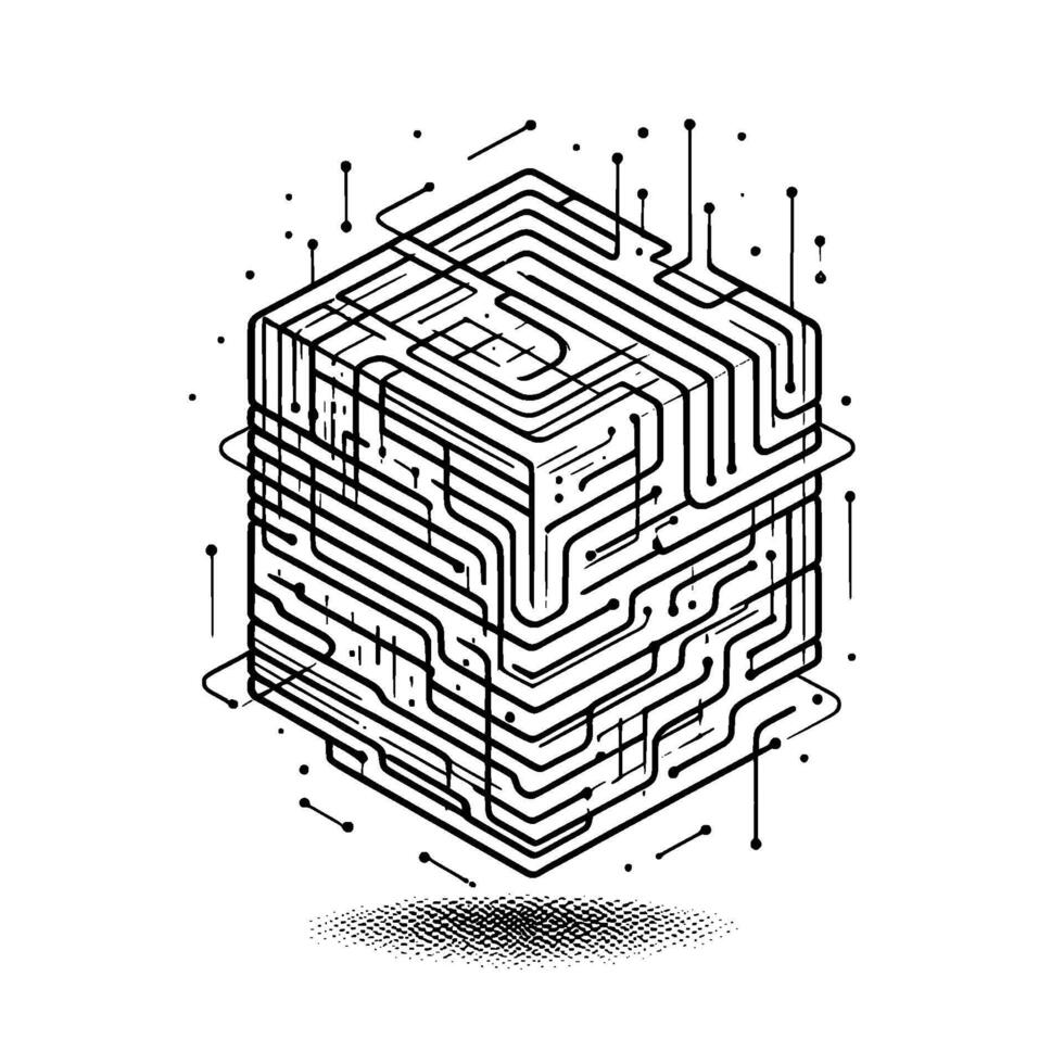Isometric Circuit Cube Tech, Data, and Digital Abstraction Pro Vector