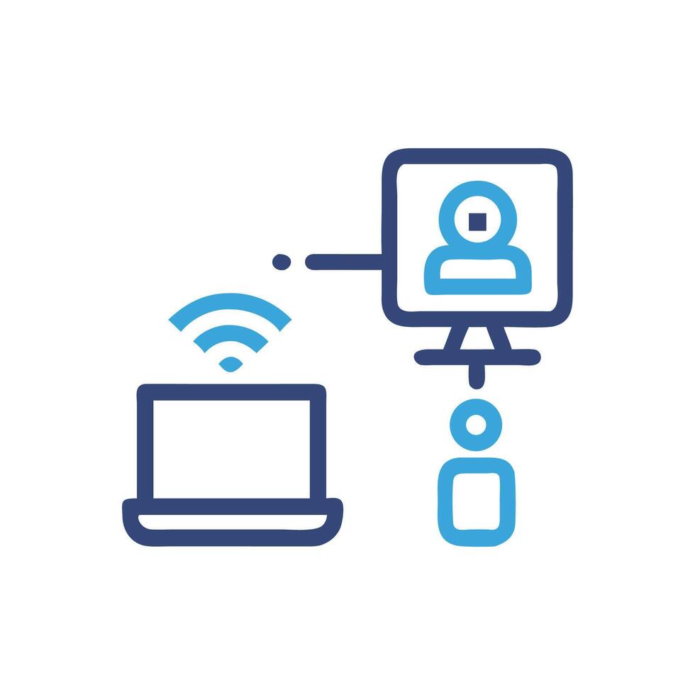 Remote meeting connection icon with laptop and computer setup Pro Vector