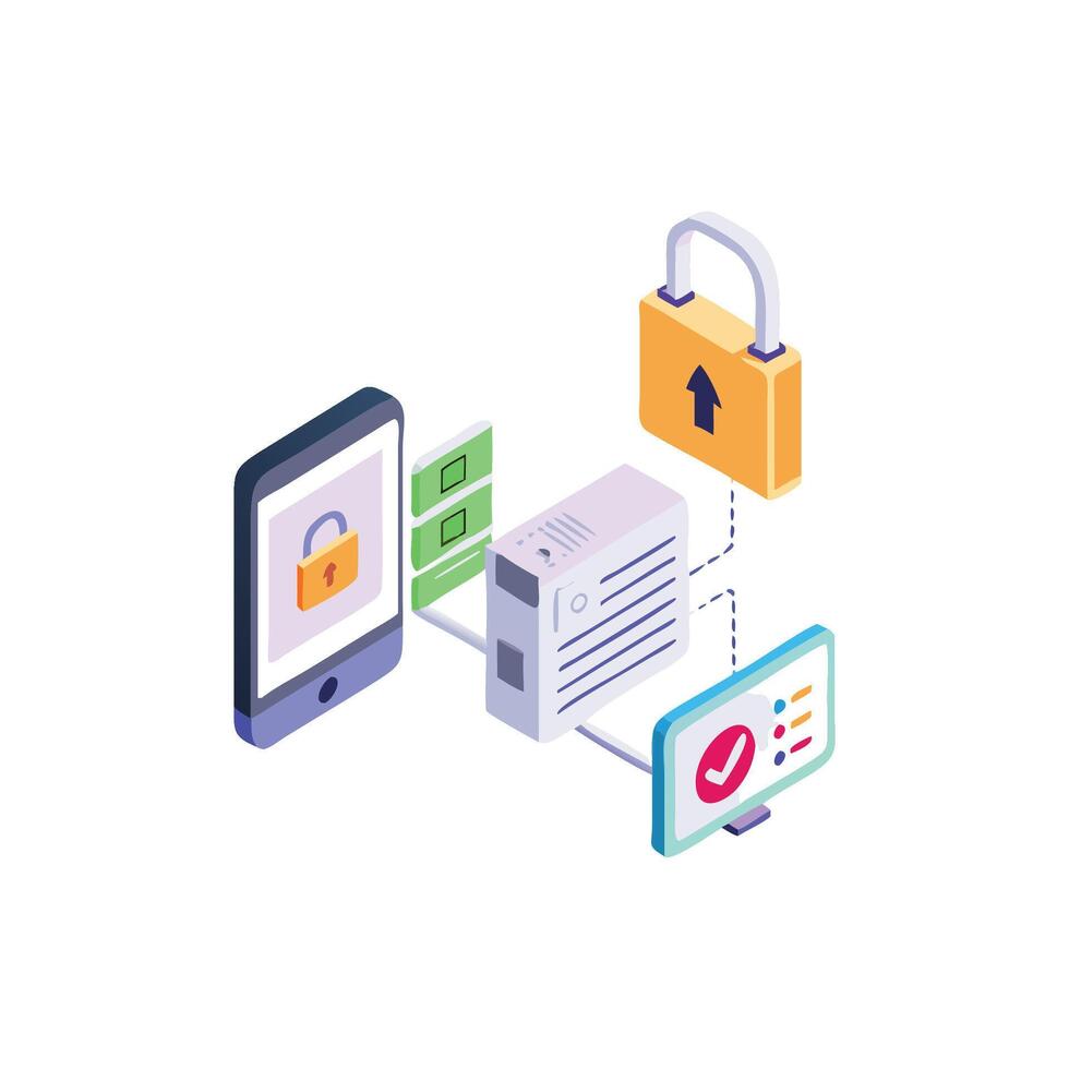Isometric Data Encryption and Security Network Connection Illustration Pro Vector
