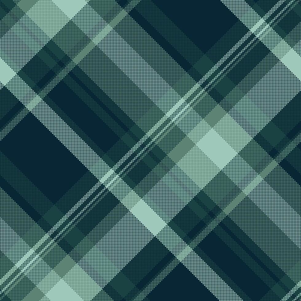 Abstract pixelated plaid pattern in shades of teal and navy. Perfect for backgrounds, textiles, and design projects requiring a classic, refined texture. Pro Vector