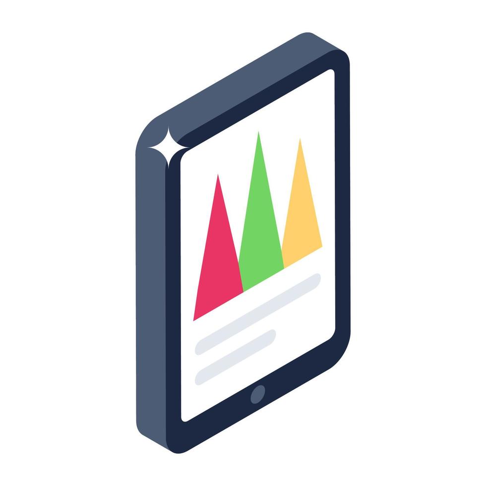 Mountains on a chart to represent curve graph inside smartphone, isometric icon of mobile statistics Pro Vector