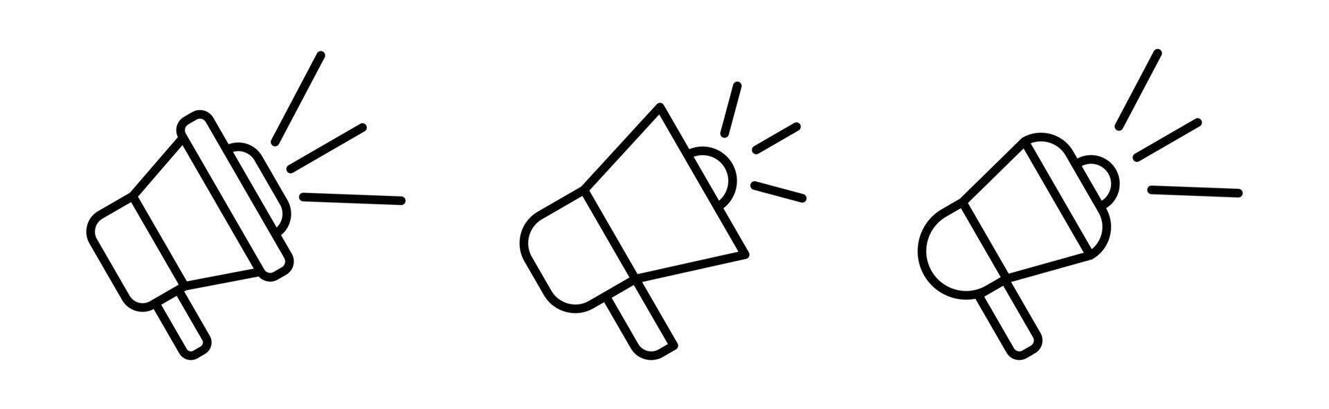 Loudspeaker line icon set. Megaphone symbol for website button. Sound, megaphone, speaker, loud, announce, speech Pro Vector