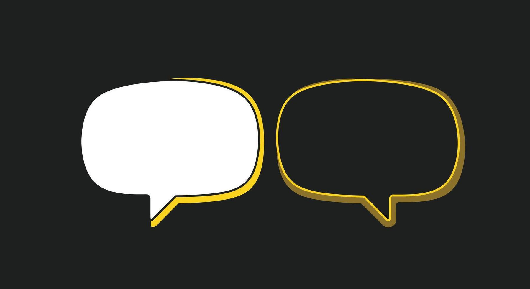 The Overlapping Black and White Speech Bubbles,Conversation Cloud,Dialogue Balloons Intersecting,Thinking and Speaking Communication Bubbles, both empty with Yellow on black background Pro Vector