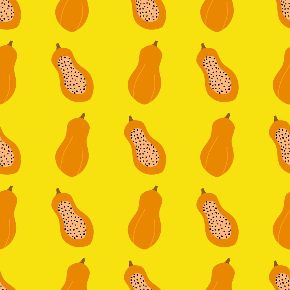Seamless yellow background with papaya pattern. Wrapping paper pattern. Patterns for decoration. vector