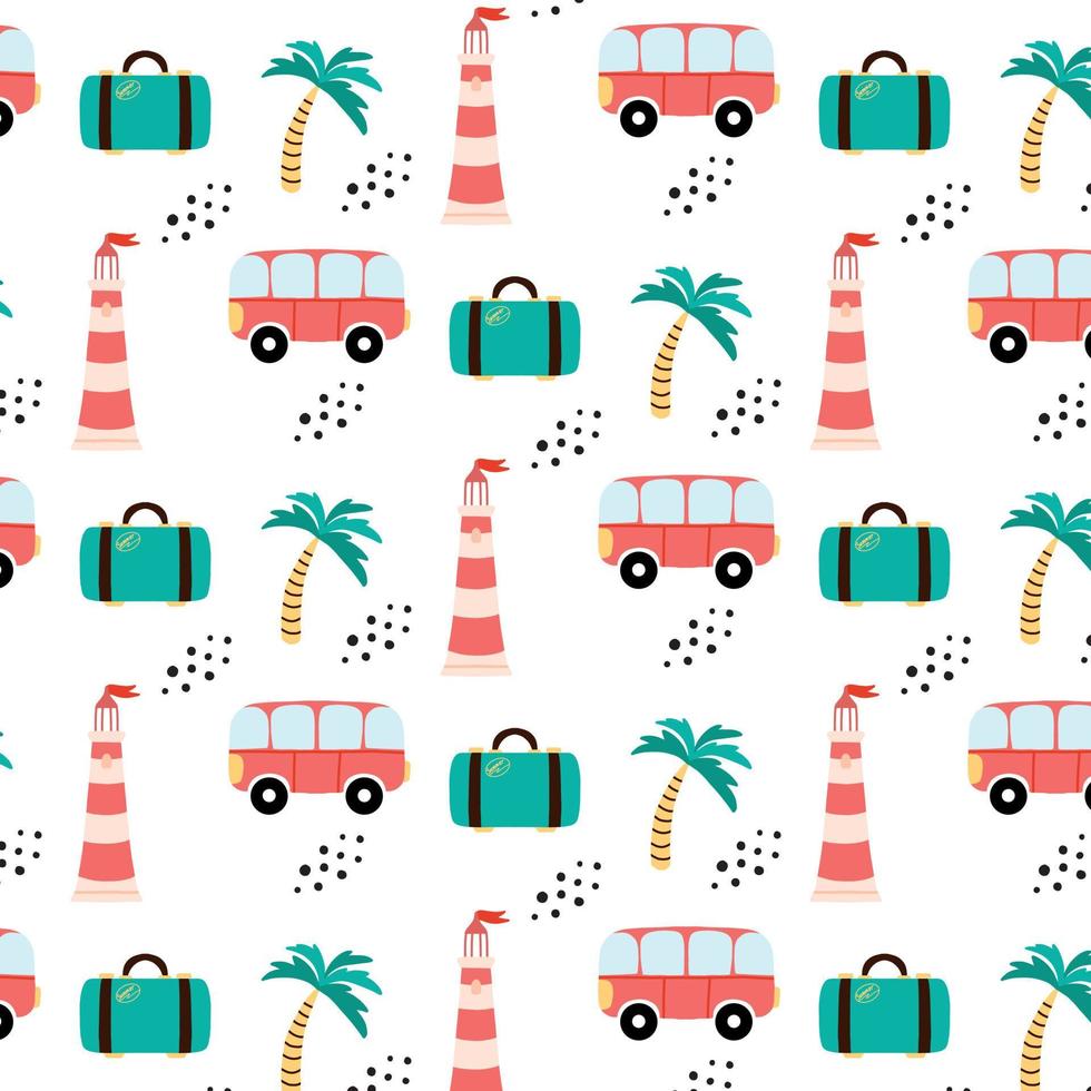 summer pattern. Pattern with a bus of palm trees and a suitcase. Vector pattern in a hand-drawn style. Pro Vector