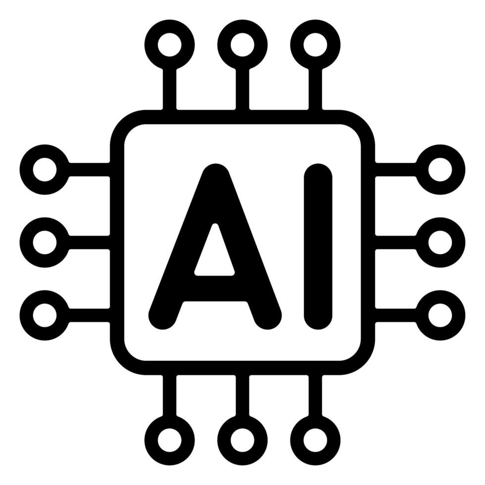 Minimal AI Chip with Circuit Lines. Black and white icon Pro Vector