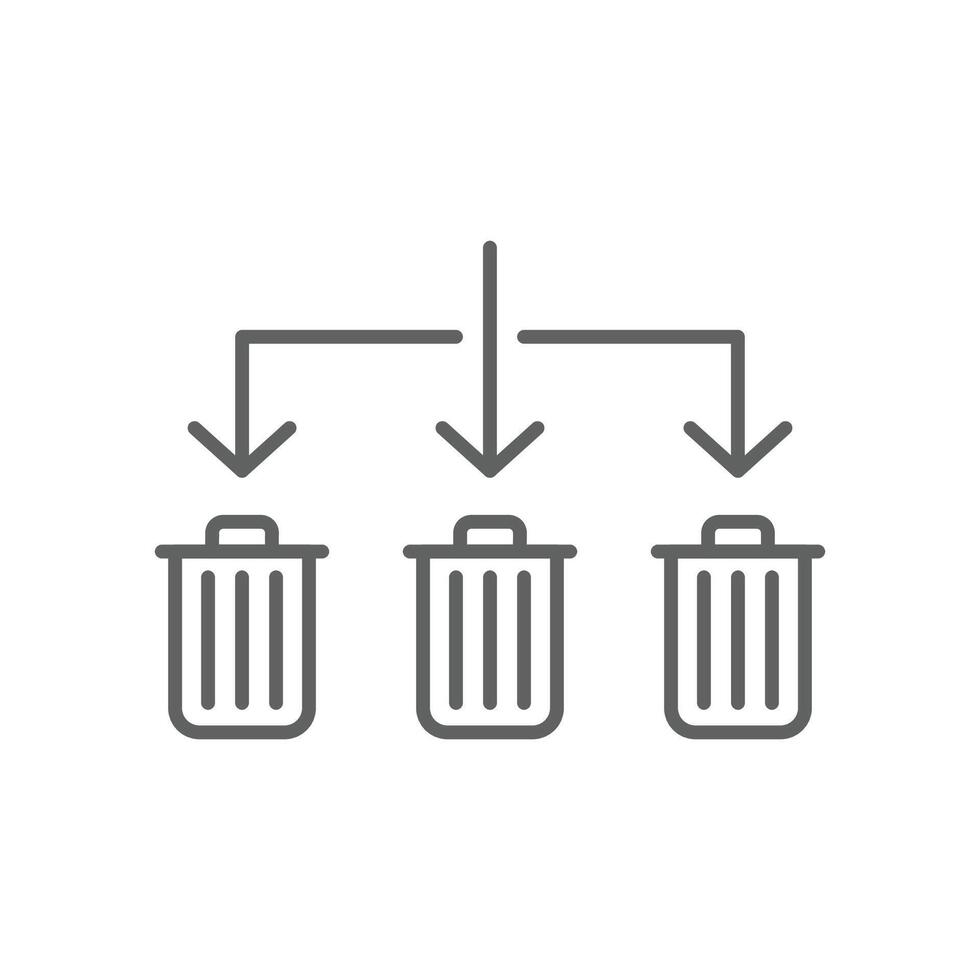 Waste Sorting outline style icon. Waste segregation, sorting garbage by material, bin, trash with arrow separate concept. Thin line symbol. Illustration isolated. Editable stroke. Pro Vector