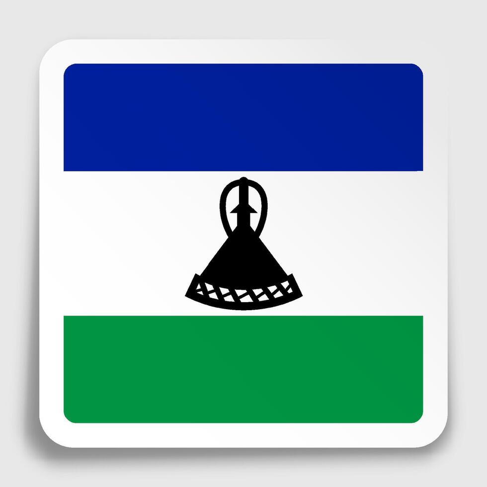 Lesotho flag icon on paper square sticker with shadow. Button for mobile application or web. image Pro Vector