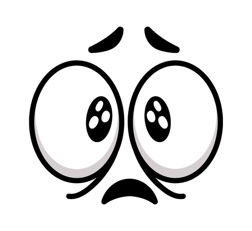 Cartoon face expressing worry and fear, featuring big eyes and raised eyebrows, effectively conveying anxiety, concern, and a range of negative emotions Pro Vector