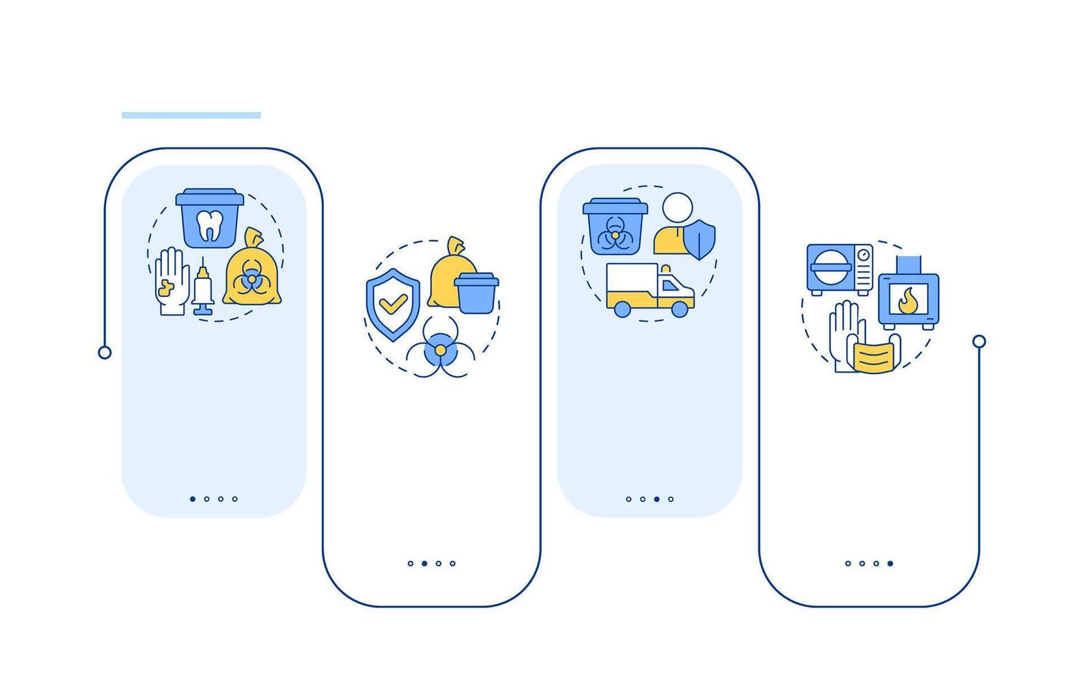 Biomedical waste disposal rectangle infographic . Segregation, containment. Data visualization with 4 steps. Editable rectangular options chart Pro Vector