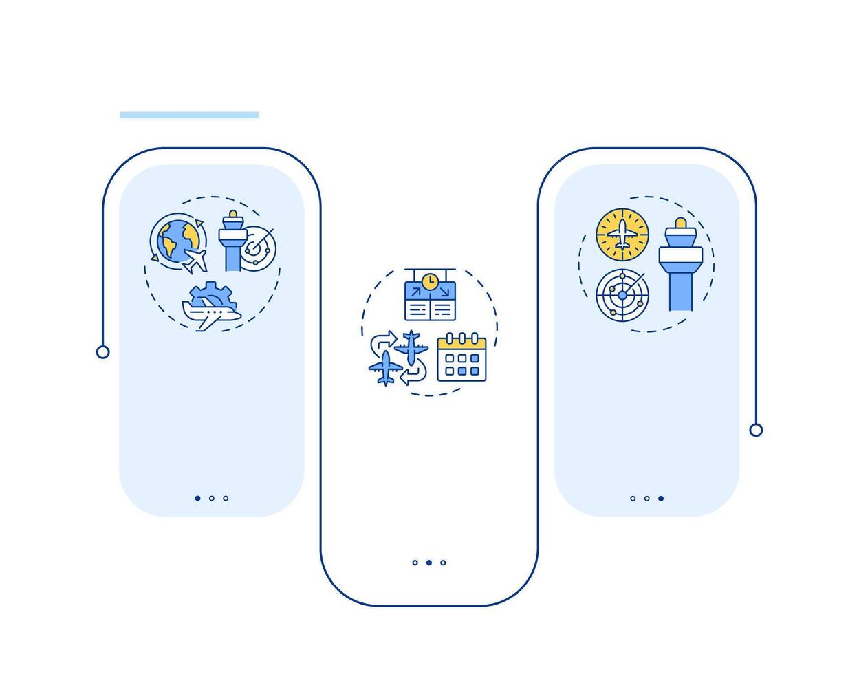 Air traffic flow management rectangle infographic . Tower control, aircraft maintenance. Data visualization with 3 steps. Editable rectangular options chart Pro Vector