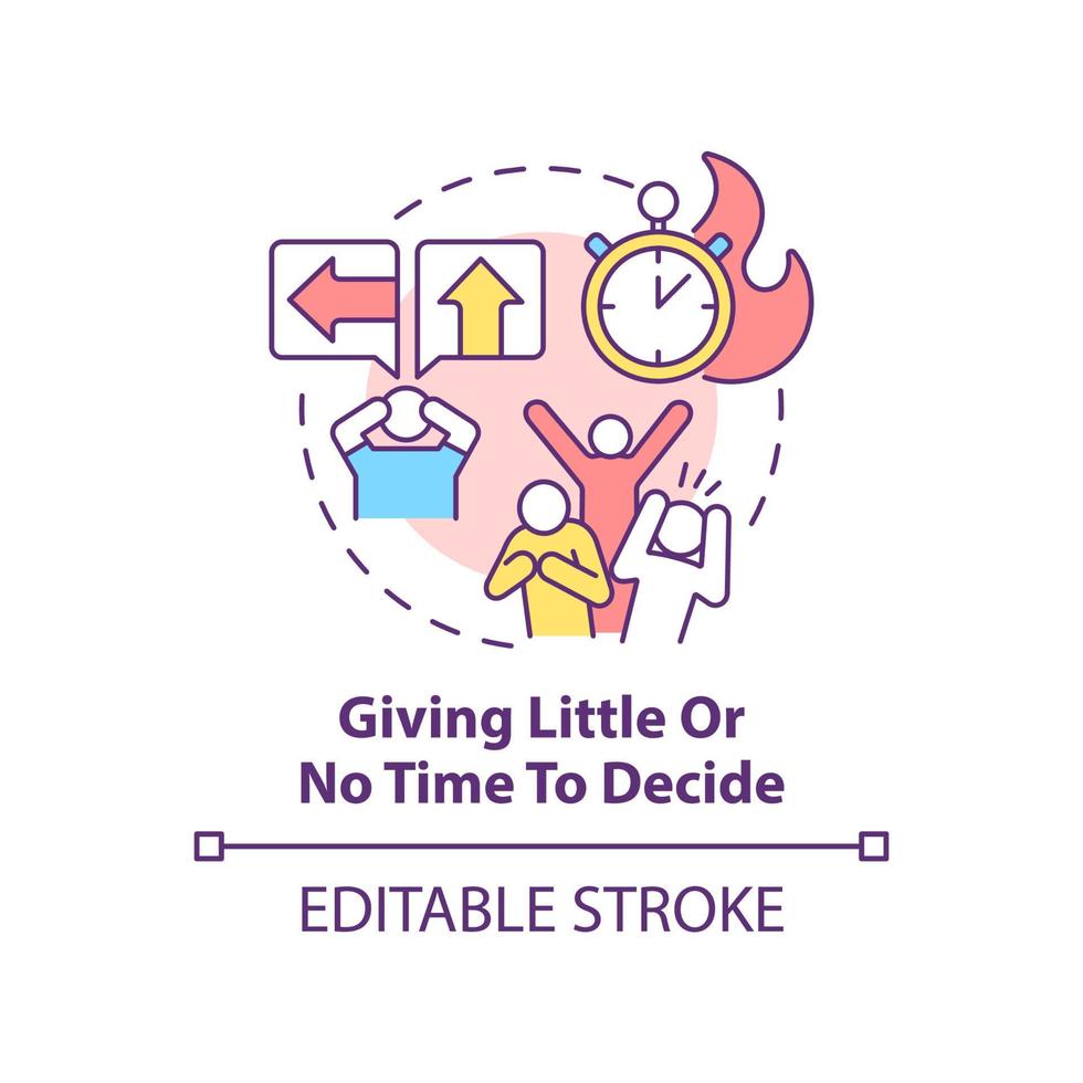 Giving little and no time to decide concept icon. Manipulation example abstract idea thin line illustration. Isolated outline drawing. Editable stroke. Arial, Myriad Pro-Bold fonts used Pro Vector