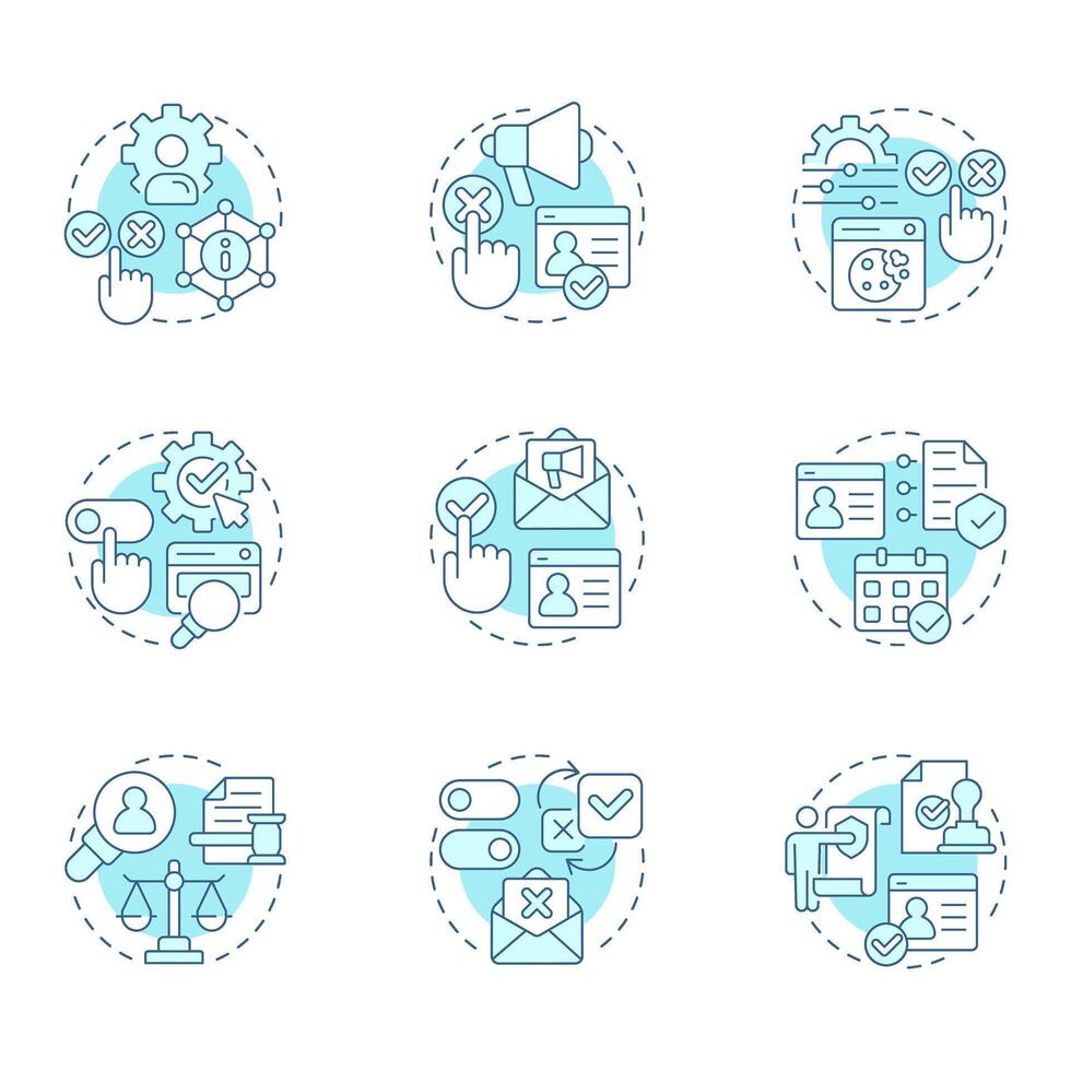 Consent management soft blue concept icons. User agreement to process personal data. Web site cookies policy. Icon pack. Round shape illustrations for presentation. Abstract idea Pro Vector