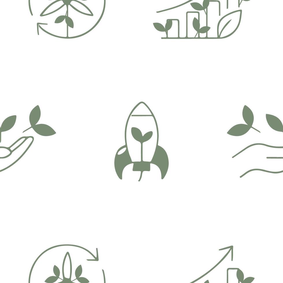 seamless pattern with a set of business icons and green leaves, namely the combination of business and ecology and the ecological use and application of energy vector