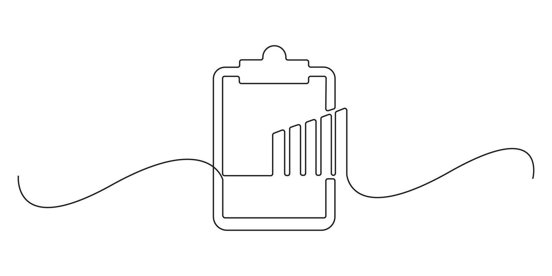 Continuous one line drawing of clipboard with graph. Object one line of bar chart. Business growth. Graphic illustration Pro Vector