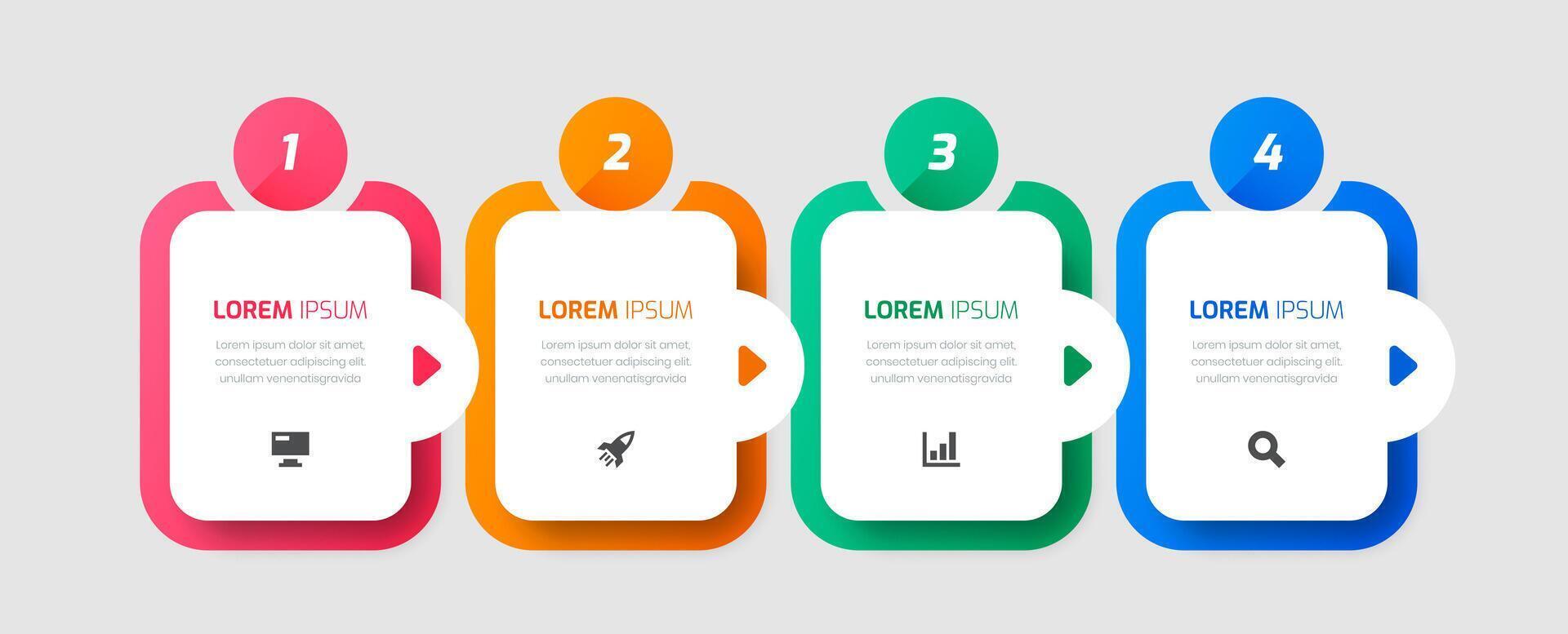 Infographic Business with Rounded Rectangle Label, Icon and 4 Numbers for Presentation Pro Vector
