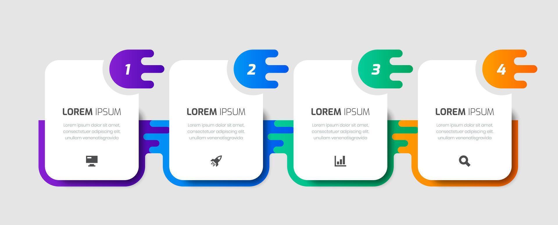 Infographic Template with Rounded Rectangle Label, Icon and Four Numbers for Presentation Pro Vector