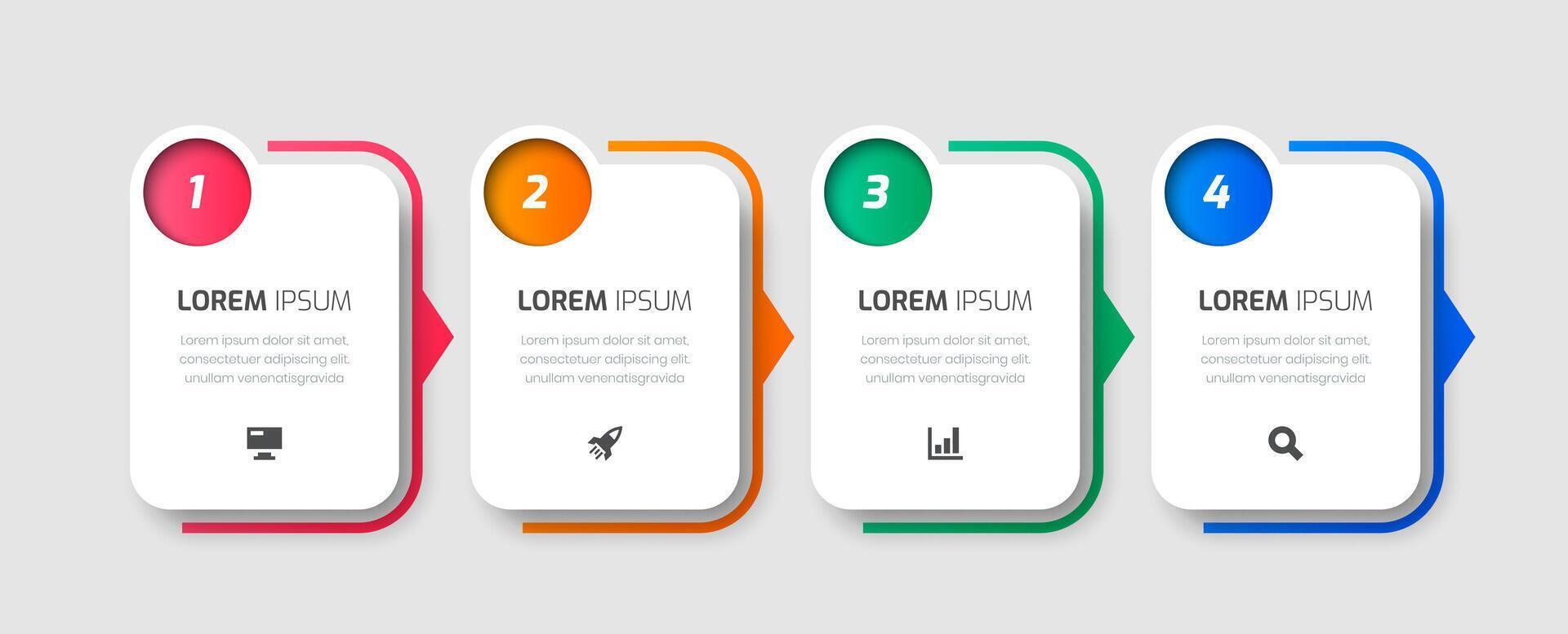 Infographic Business Template with Rounded Rectangle Label, Icon and 4 Numbers for Presentation Pro Vector