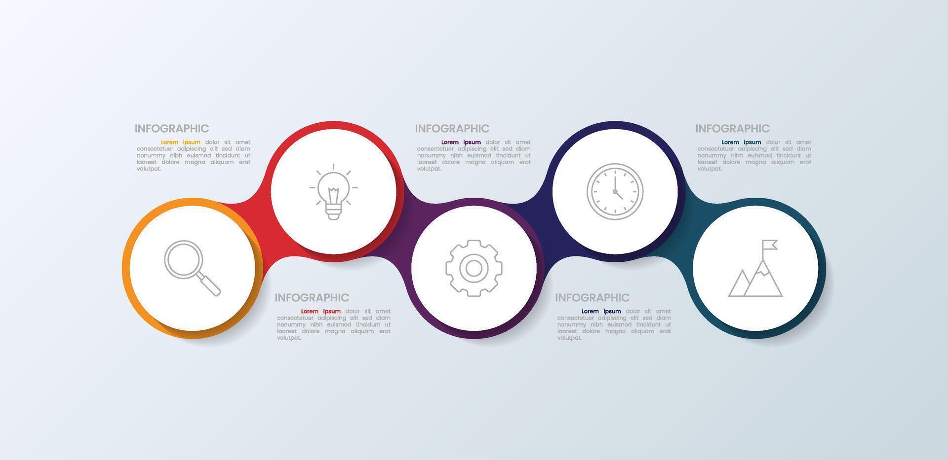 Infographic showing a process with steps, connected circles and icons. Free Vector