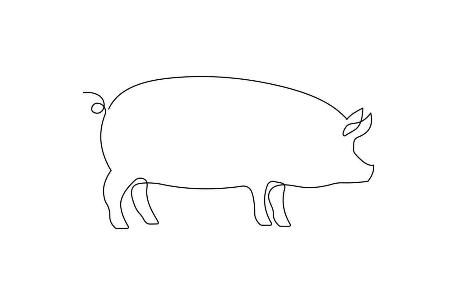 Pig in Continuous Line Art Drawing Style. Animal Abstract Pig Silhouette in Minimalist Black Linear Design, Isolated on White Background Pro Vector