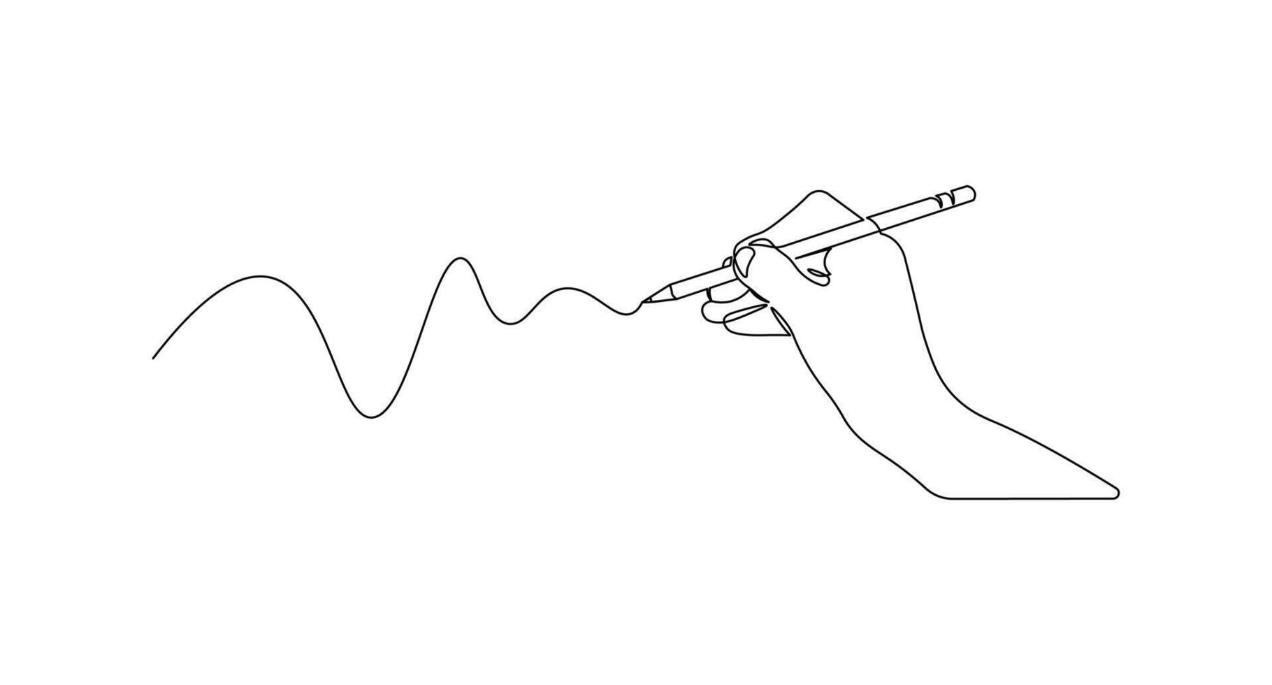 Drawing hand in continuous line art drawing style. Minimalist black linear sketch isolated on white background. Pro Vector