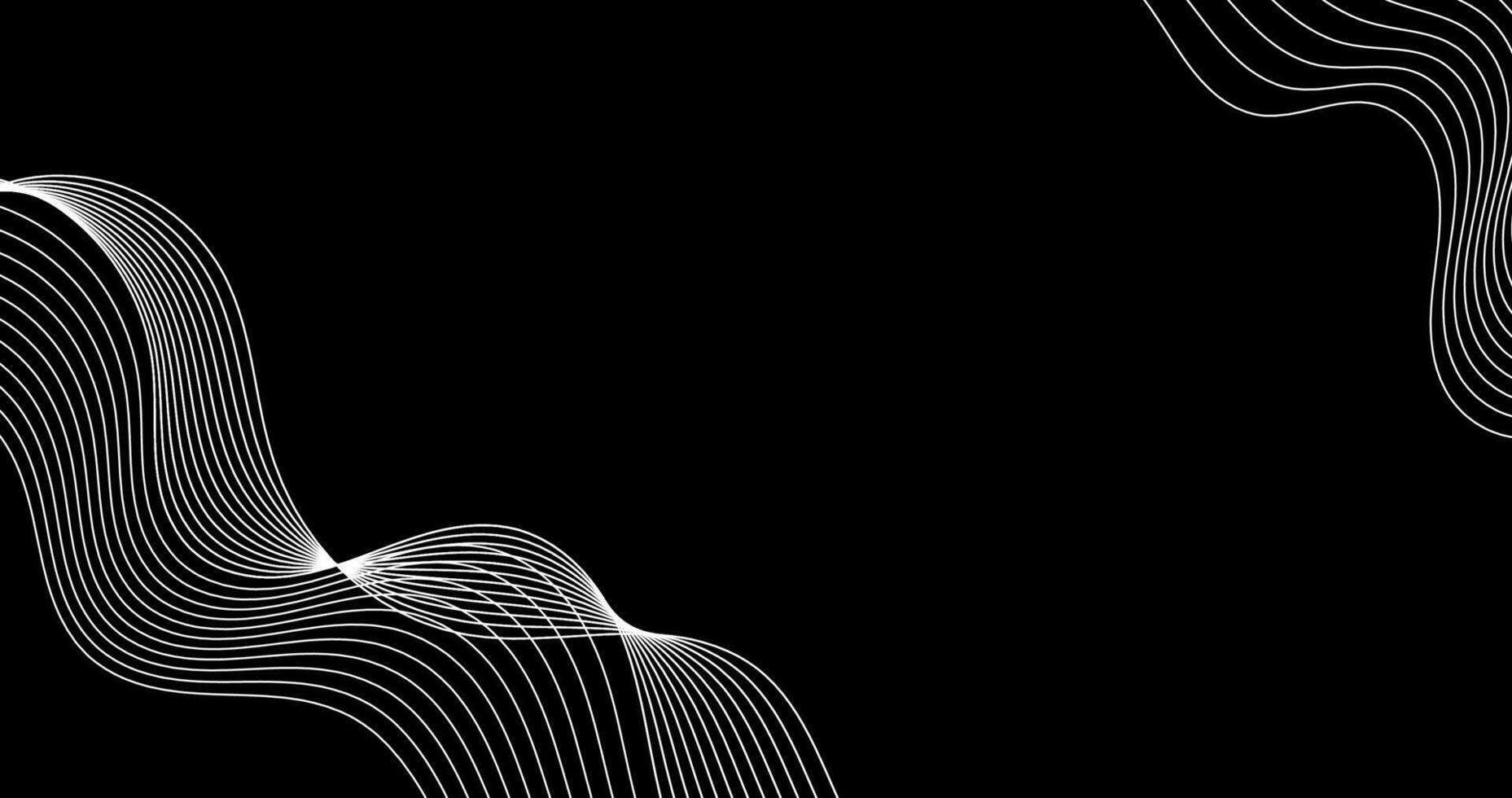 White Abstract wavy lines on top of frame and bottom of frame of black background element design Pro Vector