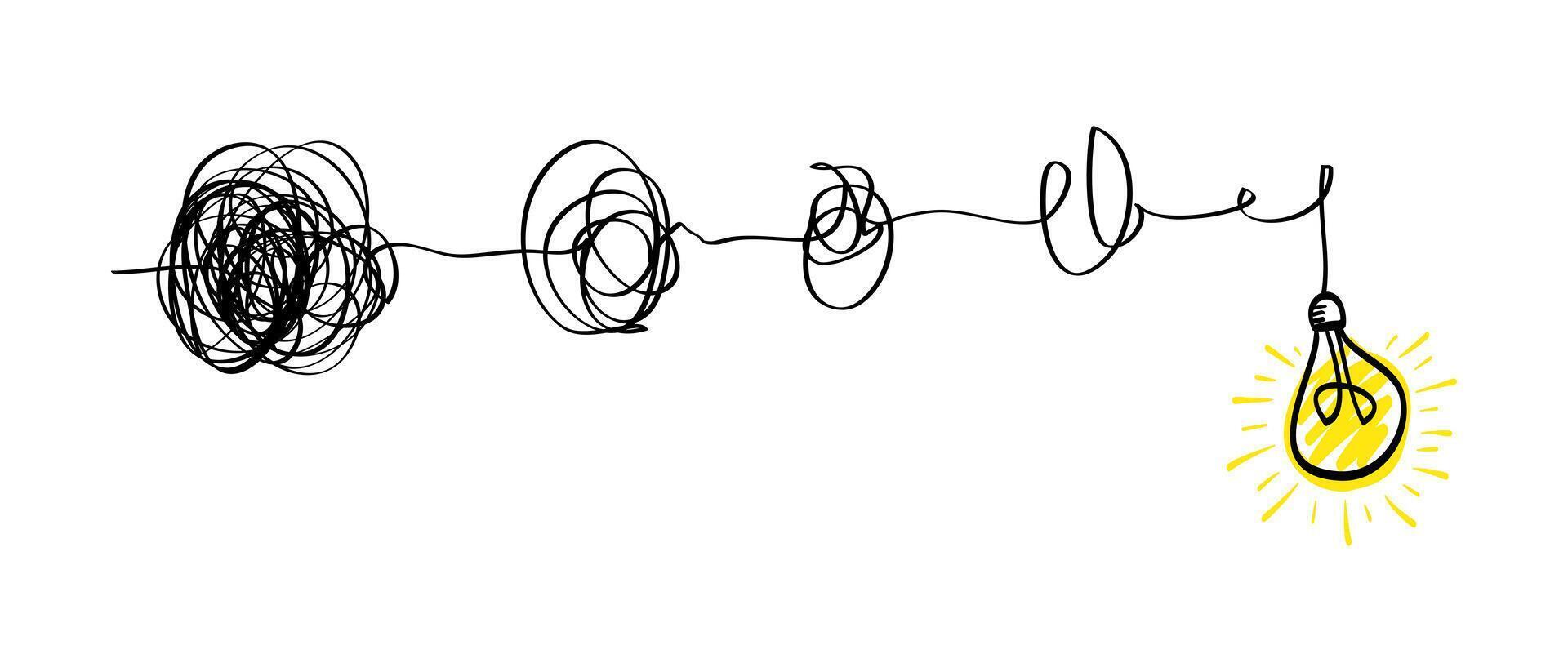 Creative bulb on doodle style. the concept of transition from complicated to simple with yellow bulb lamp. Symbol of idea, innovation, creativity, Pro Vector