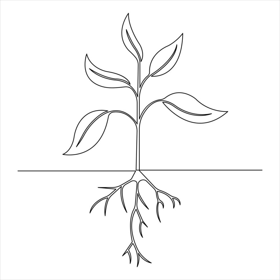 Growth plant in continuous one Line art drawing. Sprout with leaves in simple linear style isolated one line Pro Vector