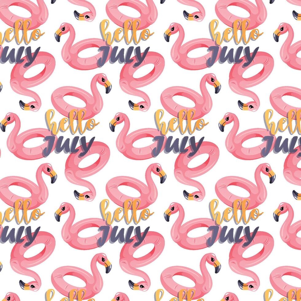 Seamless Pattern Hello July with Flamingos Pro Vector
