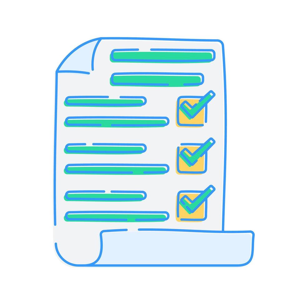 Checkmarked Task Sheet document that highlights tasks completed using green and yellow checkmarks Pro Vector