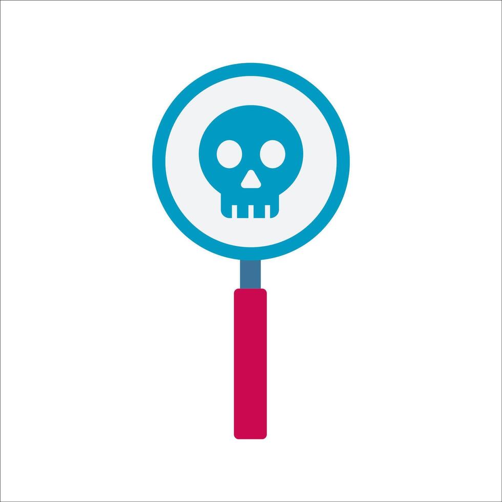 Toxic Search Flat design style, magnifying glass with a skull symbol, useful for forensic science, poison detection, and research graphics. vector