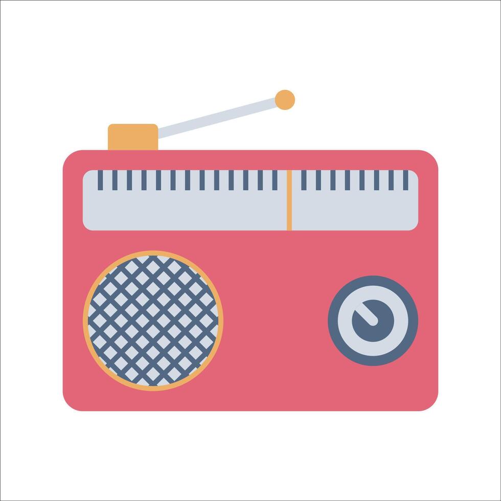 Radio Flat design style, red retro radio with an antenna, representing audio broadcasting, suitable for media content, music-related visuals, and traditional communication themes. Pro Vector