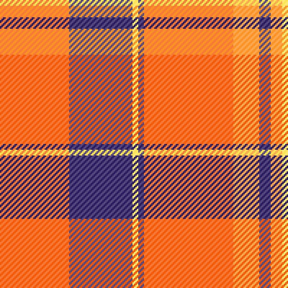 Vibrant plaid pattern in warm orange and cool blue tones. A classic textile design, suitable for backgrounds, fabrics, and retrothemed projects. Adds texture and warmth. Pro Vector