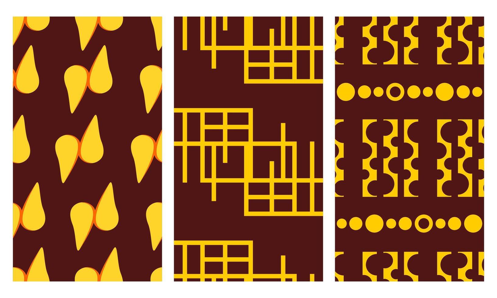 A collection of seamless patterns that combine brown and yellow. Suitable for application on paper, fabric, walls, or simply displayed digitally. vector