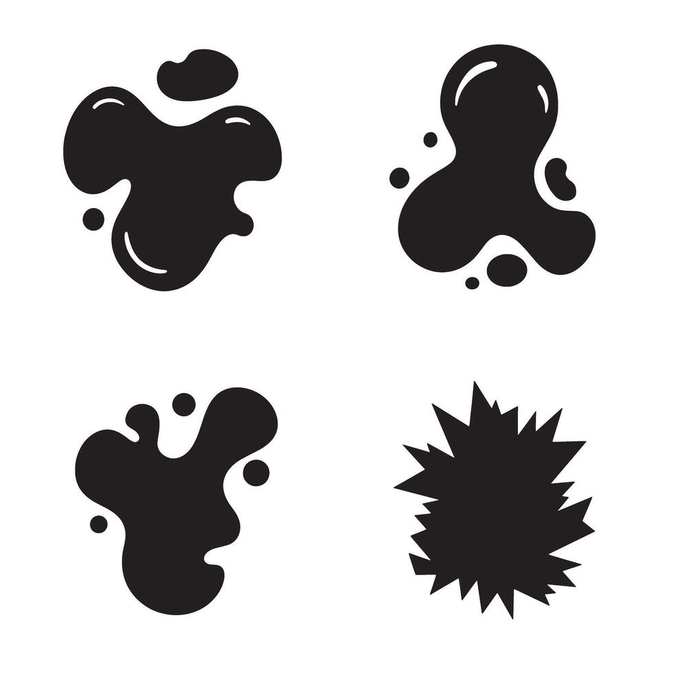 Set of black blob splatter and splodge shapes isolated on white background for graphic design vector