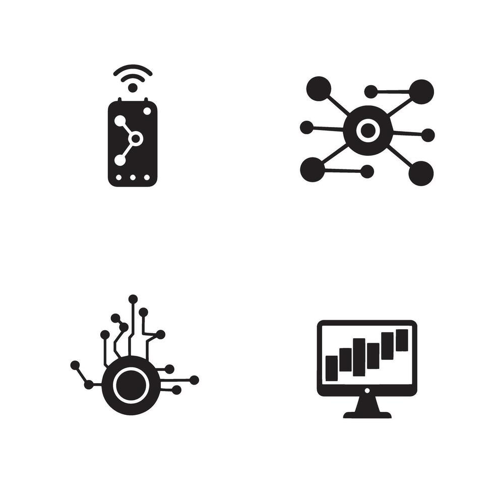 Modern technology icon set featuring network connections data analysis and remote control symbols vector