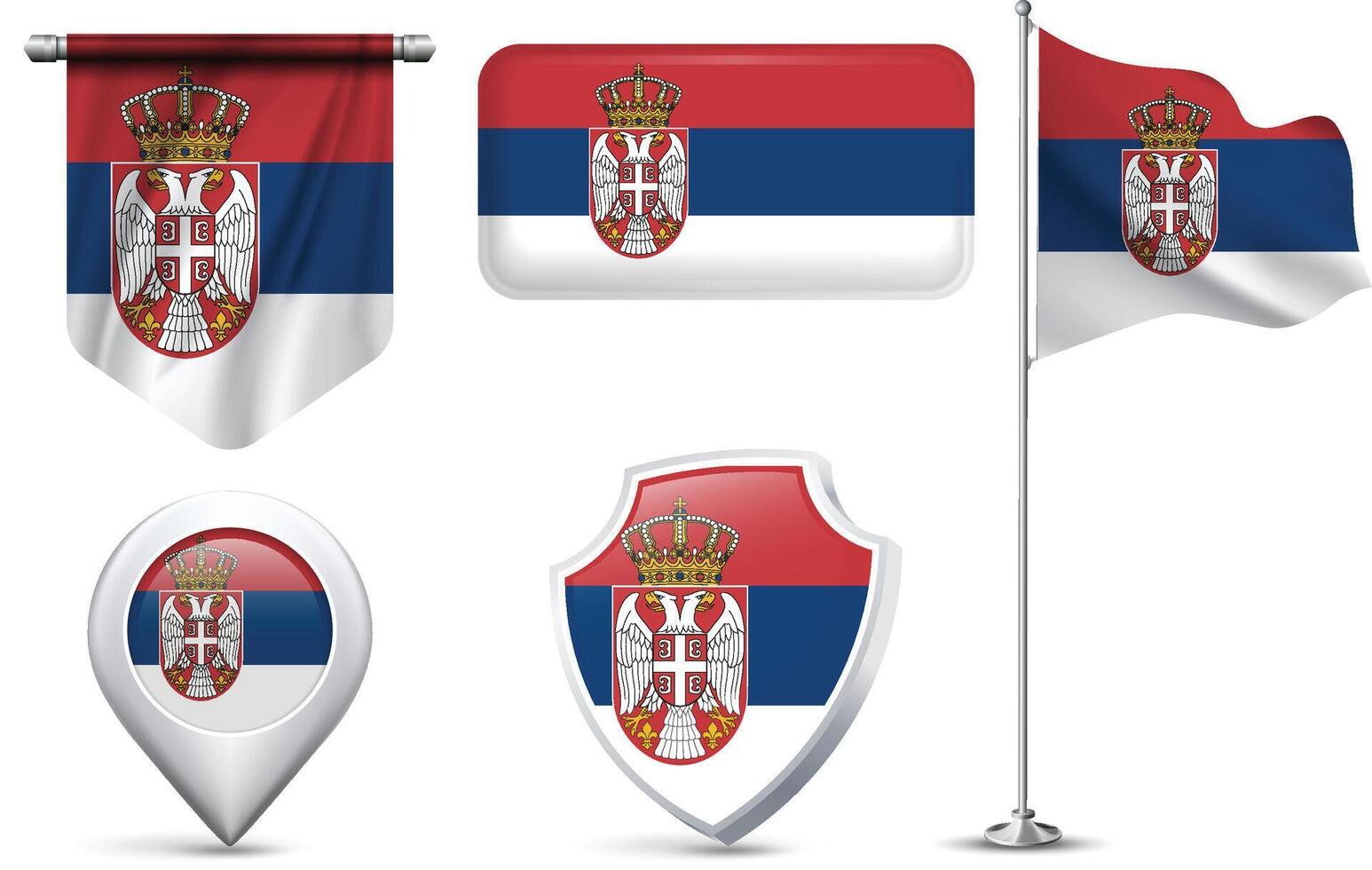 Set of Serbian Flags in Different Shapes and Styles Free Vector